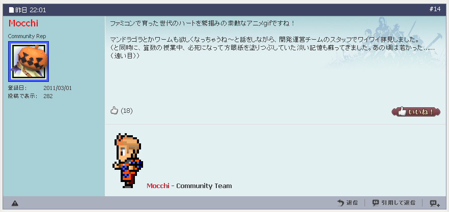 なんとFF11フォーラムのコミュニティチームの方からアイコンについてお褒めの言葉がががggg!!