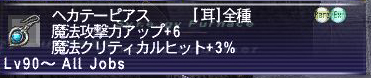 2つ目は、ご存知Raniの戦利品、ヘカテーピアス。 All Jobsで魔攻+6は破格の性能・・・ ホイスカーに更に磨きがかかりそう。
