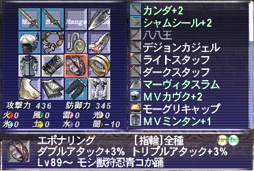 後半はやはりリジェネ&物理カットアートマを付けてアビセアに置いておくのが良い感じ。110分ごとに一旦呪符デジョンして石貰って入り直し、というのが手間ですが、放置寝のときはそのままでOK。