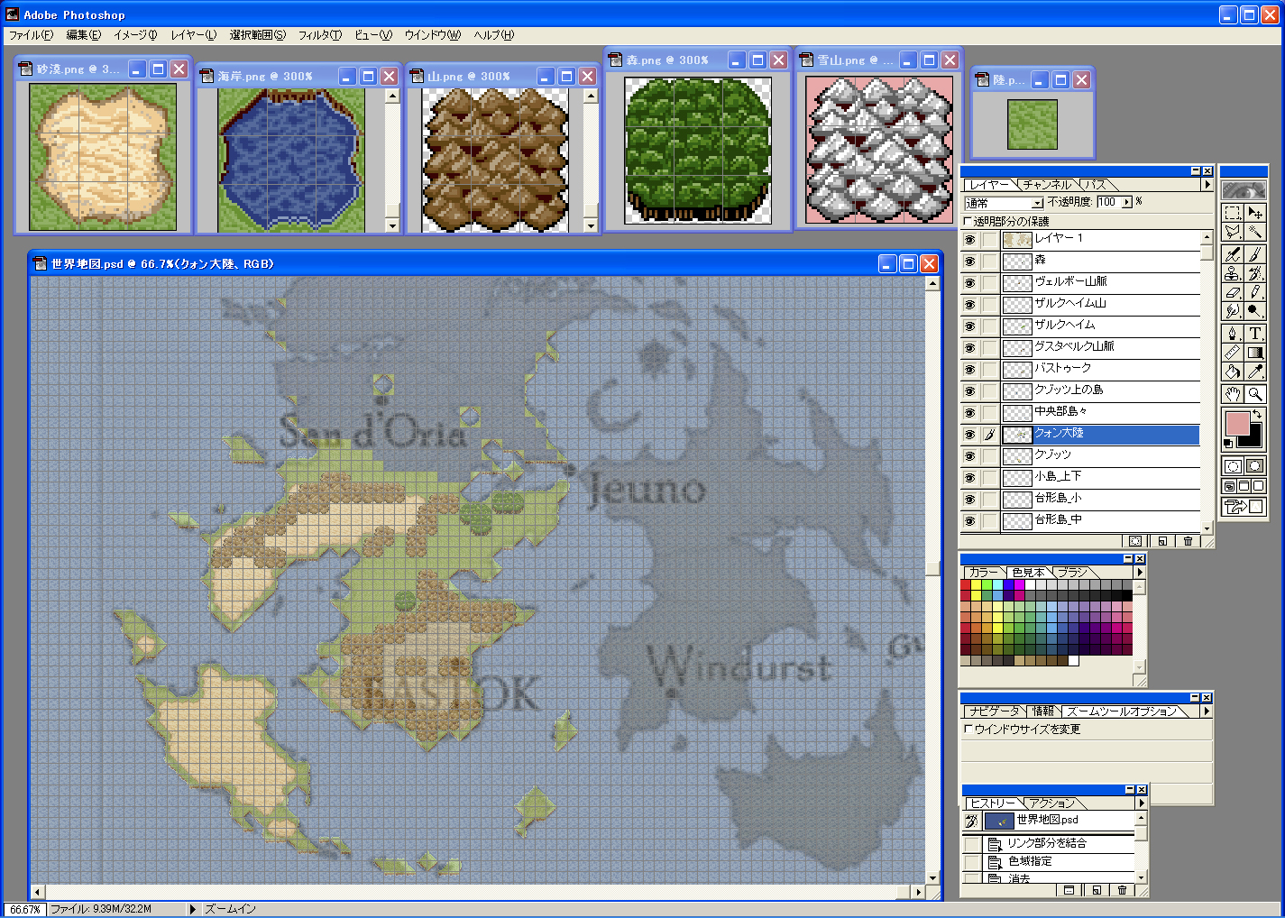 とりあえず南クォン大陸を並べて見ました。 ちょっと縮尺ちっちゃ過ぎかもしれないけど、飛空艇ムービーのためだけだし、こんな感じでいいかな。進捗率でいうと20%程度でしょうか。