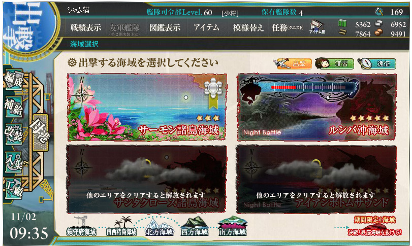 秋イベントの 決戦!鉄底海峡を抜けて! でも最難関と呼ばれるE-4に本日6:00突入しました。