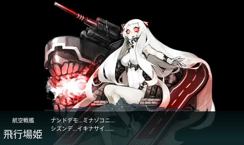E-2は夜戦ステージで、ボスのみ特定条件で昼戦に持ち込めるっぽい(艦隊に小破以上が1隻以上居る場合?) その場合、ボスの泊地棲鬼が空戦してきます。