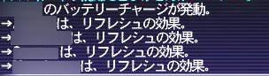 バッテリーチャージは青魔版リフレシュ。リフレシュ効果は4MP/3secで150秒持続(総回復量MP200)と、本家リフレシュのMPCost40、3MP/3Secで150秒持続(総回復量MP150)を効率面で上回ります。BPも3とお手軽。今回VUでNo.1の青魔法かもしれませんねぇ・・・ ジョブ特性+リフレ胴+バッテリーチャージなら合計でオドロキの6MP/3Sec。無限機関の夢に近づきます(=´∀`=)