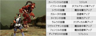 召喚獣の周りにいるPCに召喚獣ごとの効果が得られます。